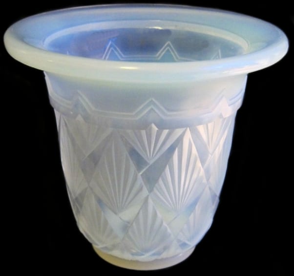 Trumpet vase with flared rim, with striped kite-shaped lozenges, and round foot. 18 cm high. 19.5 cm diameter rim, 9 cm across the base.